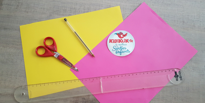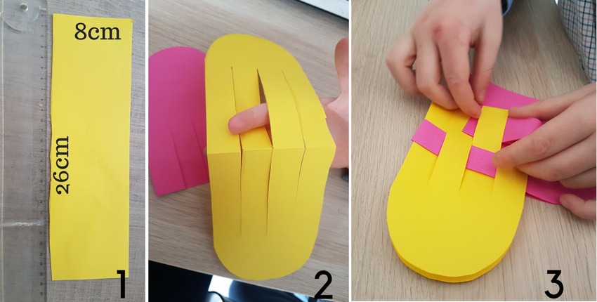 - Découpez deux bandes de papier (25 x 8 cm) de chaque couleur. Image 1