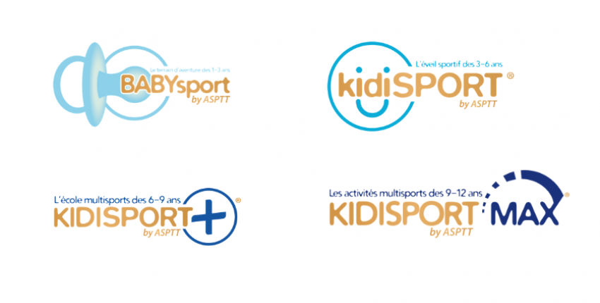 Quatre de ces stades de développement concernent les enfants de 1 à 12 ans et correspondent à la gamme KID’S. Cette gamme est composée de quatre labels. Les labels de l’ASPTT Fédération Omnisports, représentent les activités respectant des critères normés relatifs à l’accueil des participants, au contenu des activités, à la qualité de l’encadrement, au niveau d’équipement et au suivi des pratiquants.
