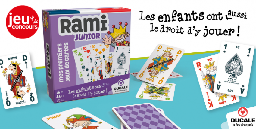 Que vous adoriez les jeux de cartes, que vous aimiez transmettre ou simplement en découvrir de nouveaux, tentez de gagner une boîte du jeu Rami Junior ! Ce classique du jeu de cartes a été conçu pour être appris progressivement aux enfants : règles simplifiées et évolutives permettront à tous de découvrir avec plaisir le Rami et de devenir des As à ce jeu.