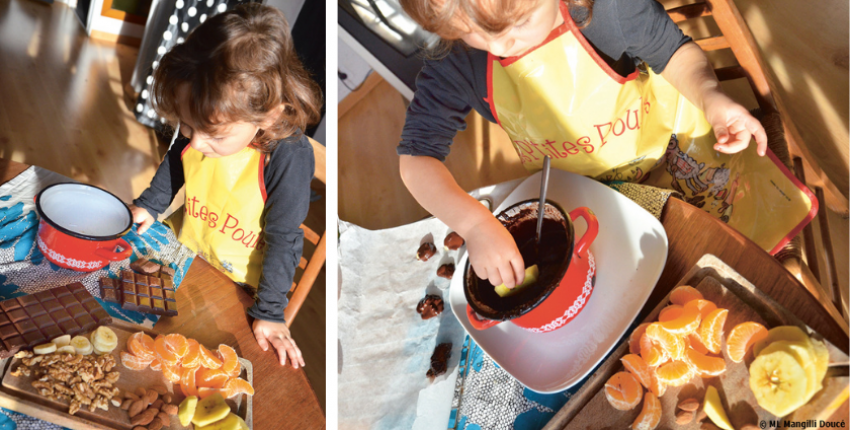Choco-fruits : Recette tirée du livre 50 activités nature avec les enfants, de Marie Lyne Magilli Doucé, éditions Terre vivante. Photos : Marie Lyne Magilli Doucé.