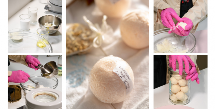 Aujourd’hui, on fabrique deux super produits faciles à faire avec les enfants : un baume à lèvres bio à la coco et des boules de bain effervescentes à la lavande… Hmm, l’odeur nous enveloppe déjà…