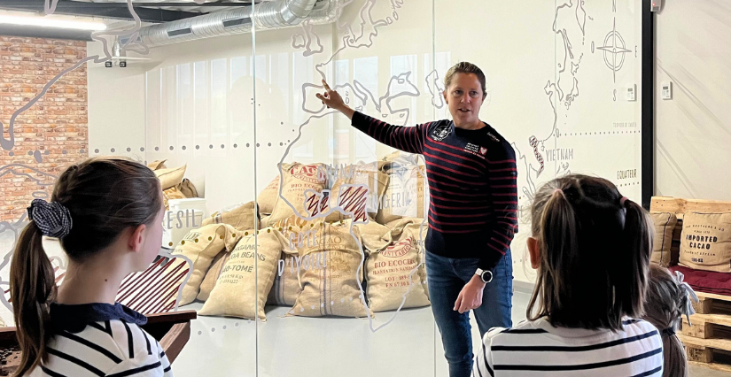 Pour l'occasion, nos kidi-reporters ont revêtu leurs plus belles marinières pour rencontrer Samantha Davies, la skippeuse qui se prépare à prendre le départ du Vendée Globe 2024 (course autour du monde en solitaire, sans escale et sans assistance) à la barre du bateau Initiatives-Cœur, sponsorisé par Les Chocolats du cœur.