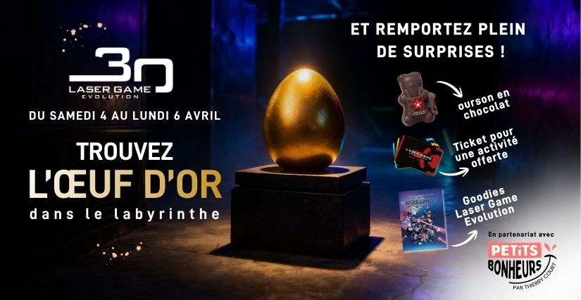 Trouvez l'œuf d'or chez Laser Game Evolution Grenoble, Saint-Martin-d'Hères et Chambéry