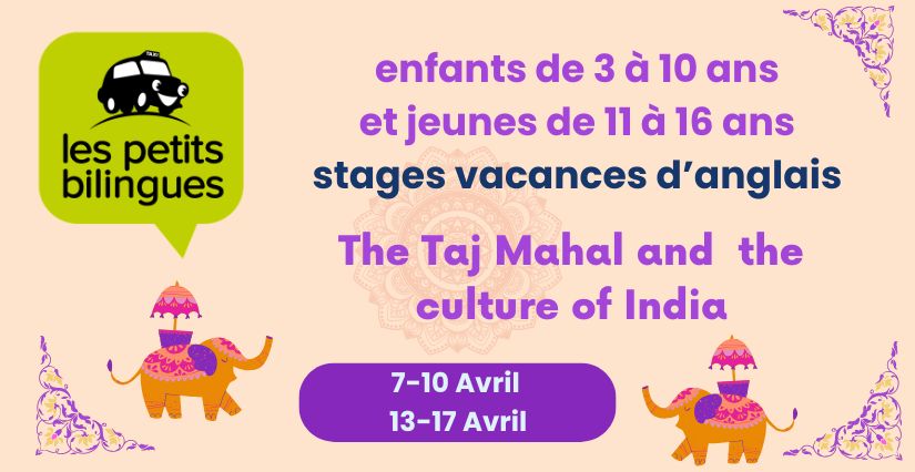 ❤ Les Petits Bilingues vous proposent pendant les vacances de printemps de voyager en Inde grâce à sa thématique : The Taj Mahal and the culture of India ! Des stages d’anglais immersifs pour les 3 à 16 ans, animés par des intervenants anglophones dans un cadre bienveillant et stimulant ! Les enfants participent à des activités ludiques telles que des jeux, des chants, des mimes, des dessins, des histoires, des aventures et des activités créatives. Pour les plus grands, le stage se déroule sous forme de chasse au trésor ou d'énigme à résoudre. Pour les adolescents, les stages ont pour objectif de renforcer l'expression orale et de découvrir une approche plus décontractée de l'anglais à travers des activités ludiques adaptées à leur âge.