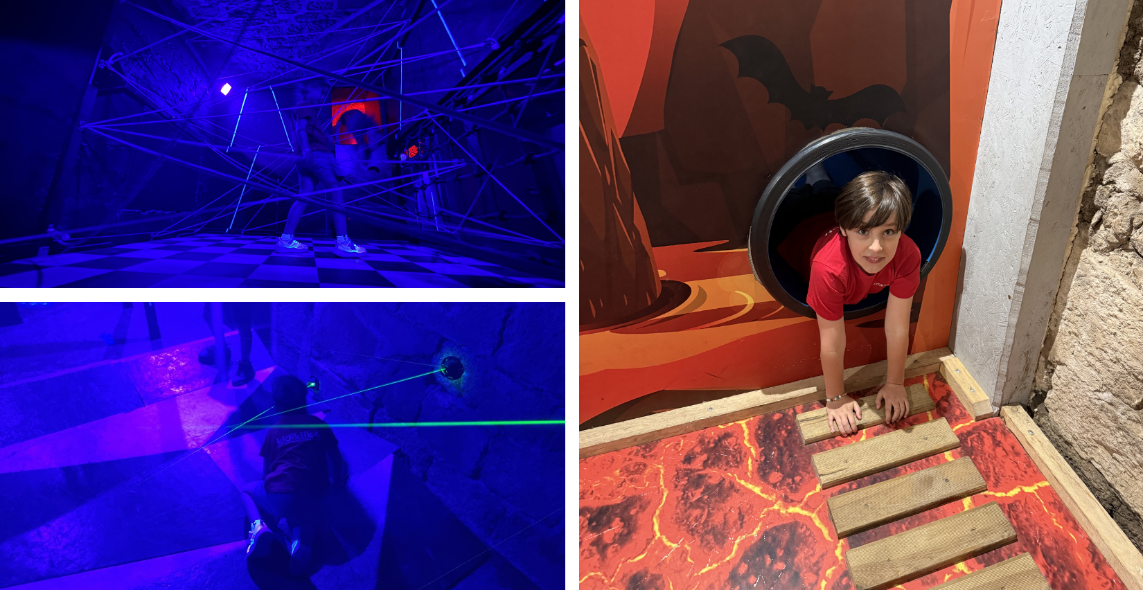 On commence par les jeux en intérieur : Mission Bastille et Les 5 cachots. Ambiance digne de Fort Boyard ! Très vite, au cœur d'un parcours semé d’embûches, on se croit dans Mission Impossible (enfin, surtout papa !). Entre fous rires et petits défis, on teste notre agilité et notre équilibre, on évite les lasers et on déjoue les pièges. Bref, on laisse s'exprimer les âmes d'aventuriers qui sommeillaient en nous, et ça fait un bien fou. Les enfants adorent et en redemandent; les parents aussi !