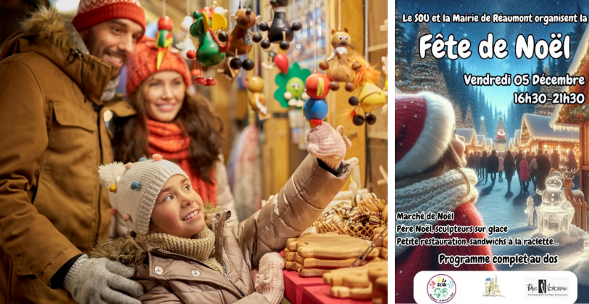 Prêts pour une soirée 100 % esprit de Noël ? Réaumont s’illumine pour sa grande Fête de Noël ! La salle des fêtes et ses abords se transforment en village de Noël avec plus de 20 exposants, de la bonne humeur et des animations pour les enfants.